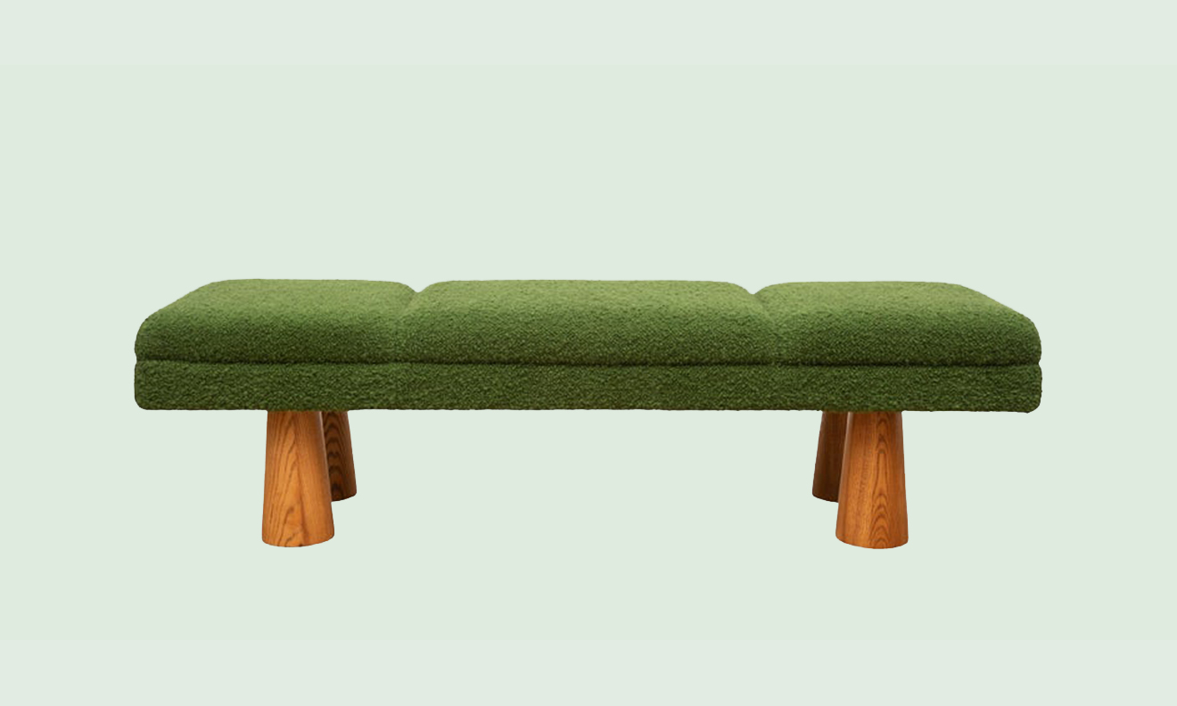Contemporary Italian Upholstered Bench in Hunter Green Bouclé