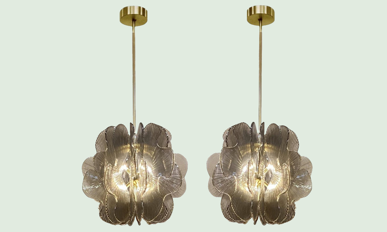 Modern Italian Gold Textured Glass Chandelier, in Stock.
