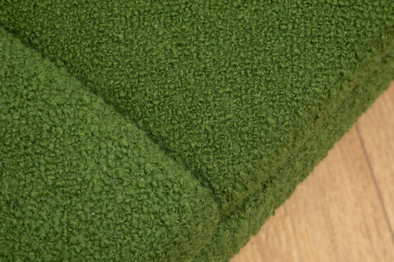 Contemporary Italian Upholstered Bench in Hunter Green Bouclé with Ash Tapered Legs