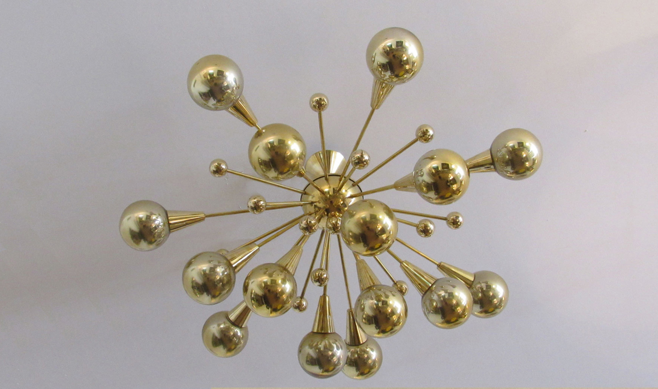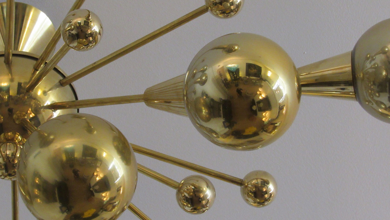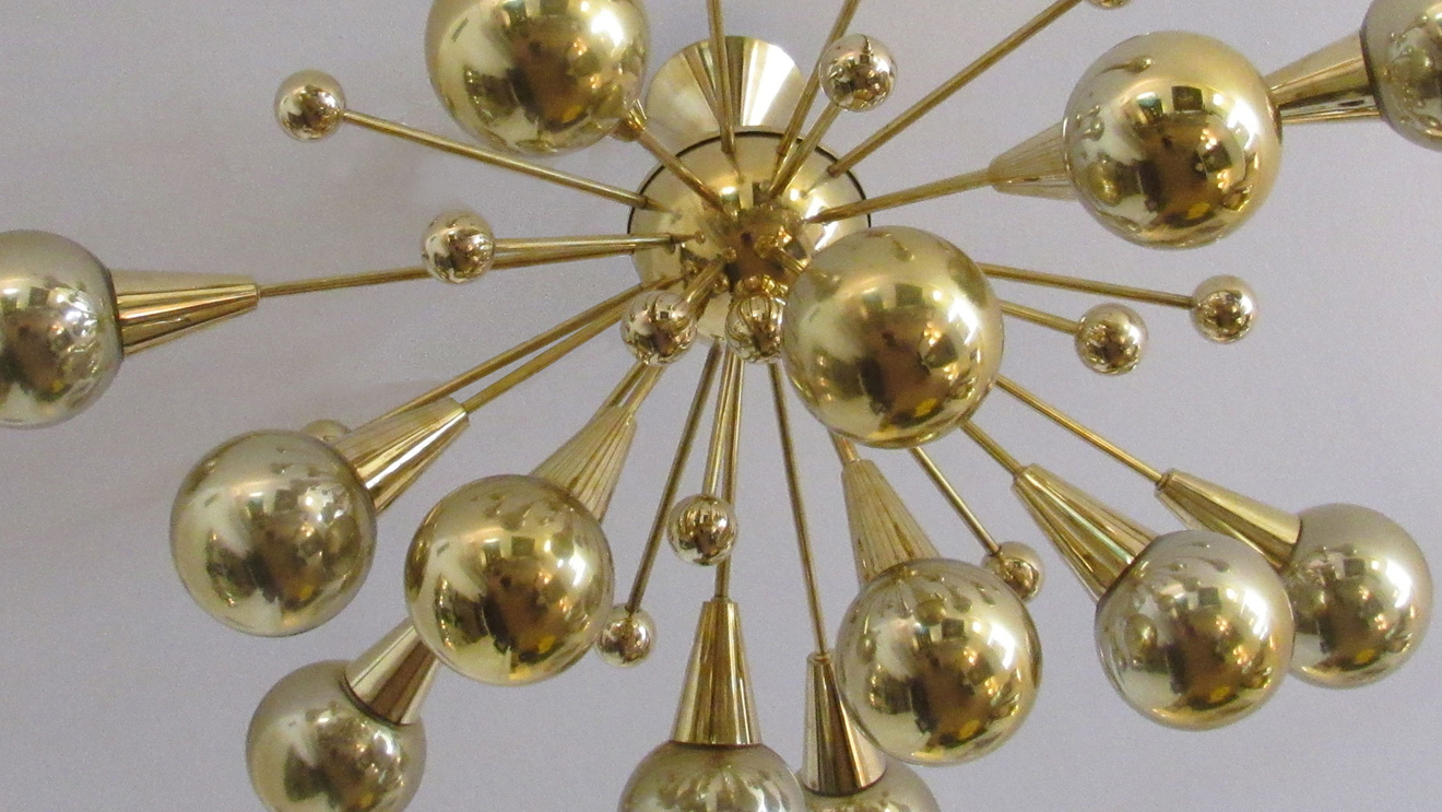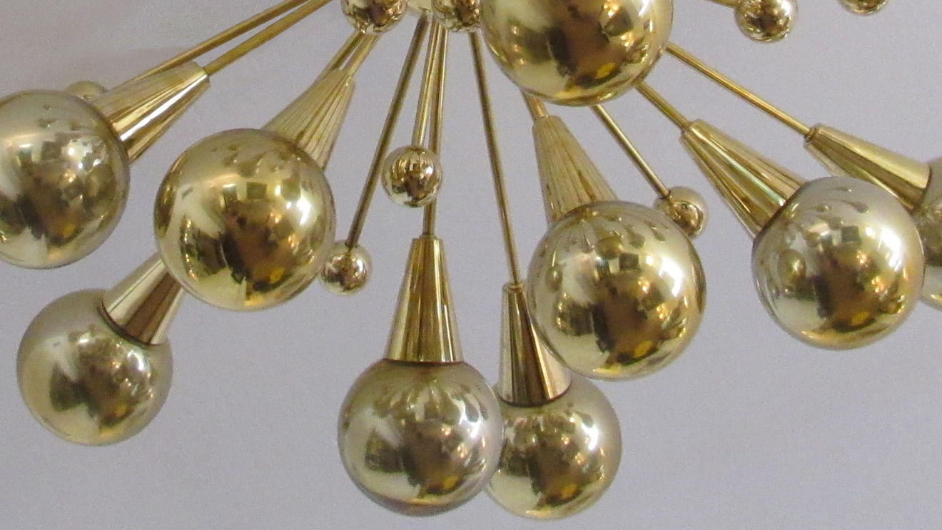 Half sputnik gold glass balls and brass stem balls chandelier.