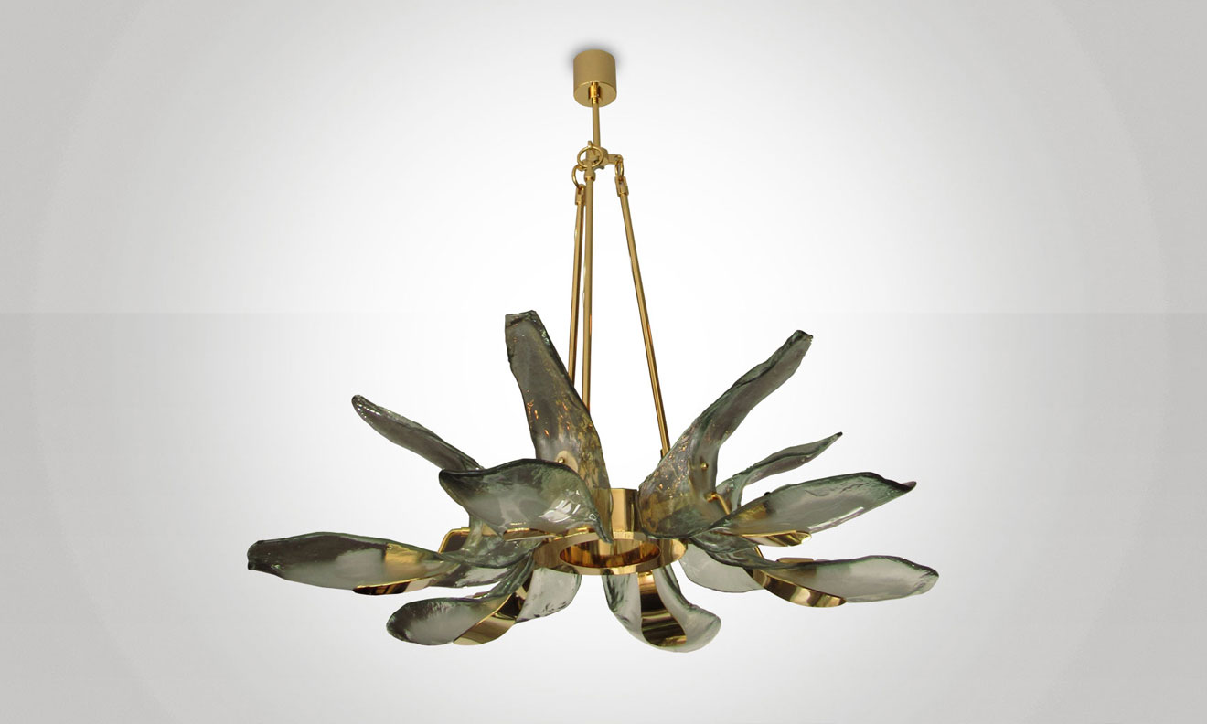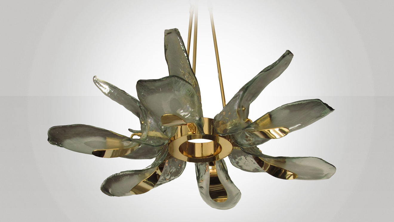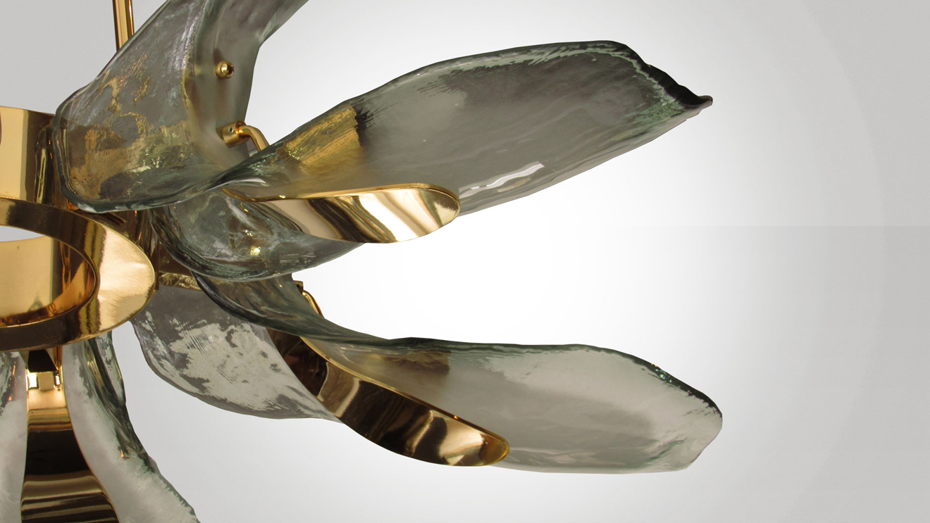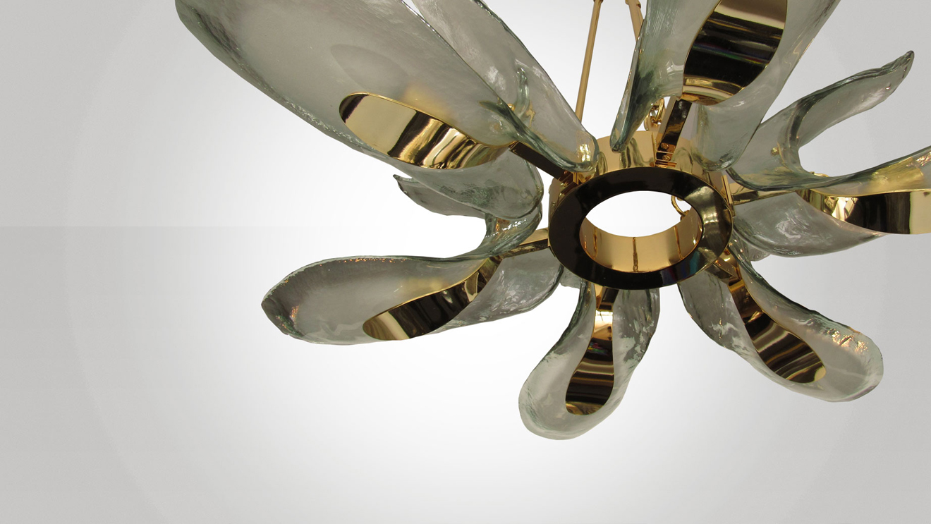Italian Gold Plated & Murano Glass "Petals" Chandelier.