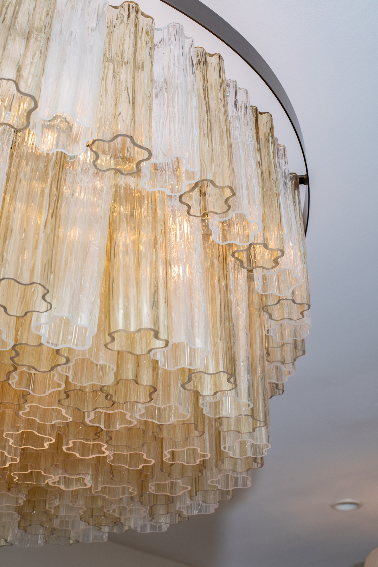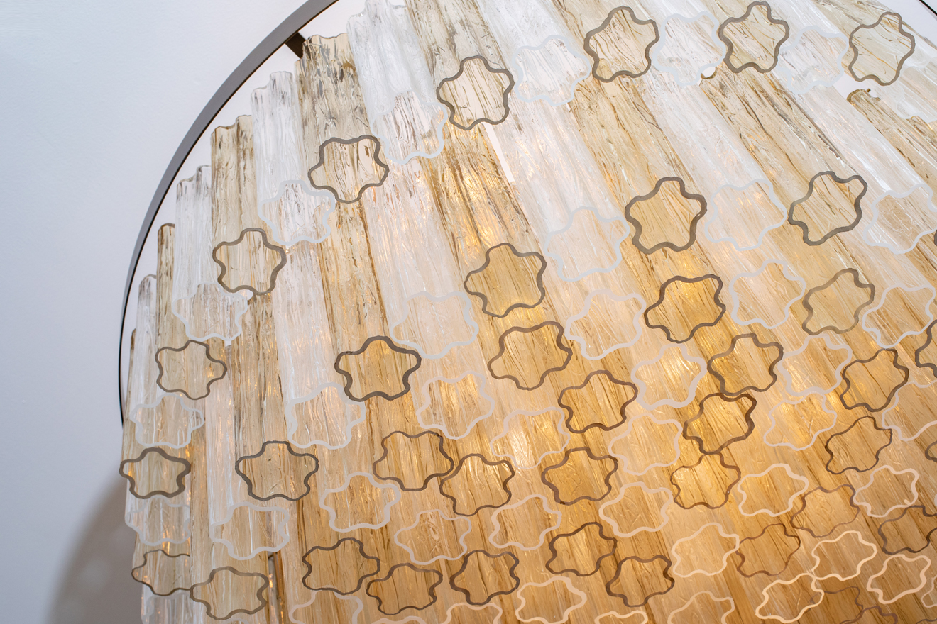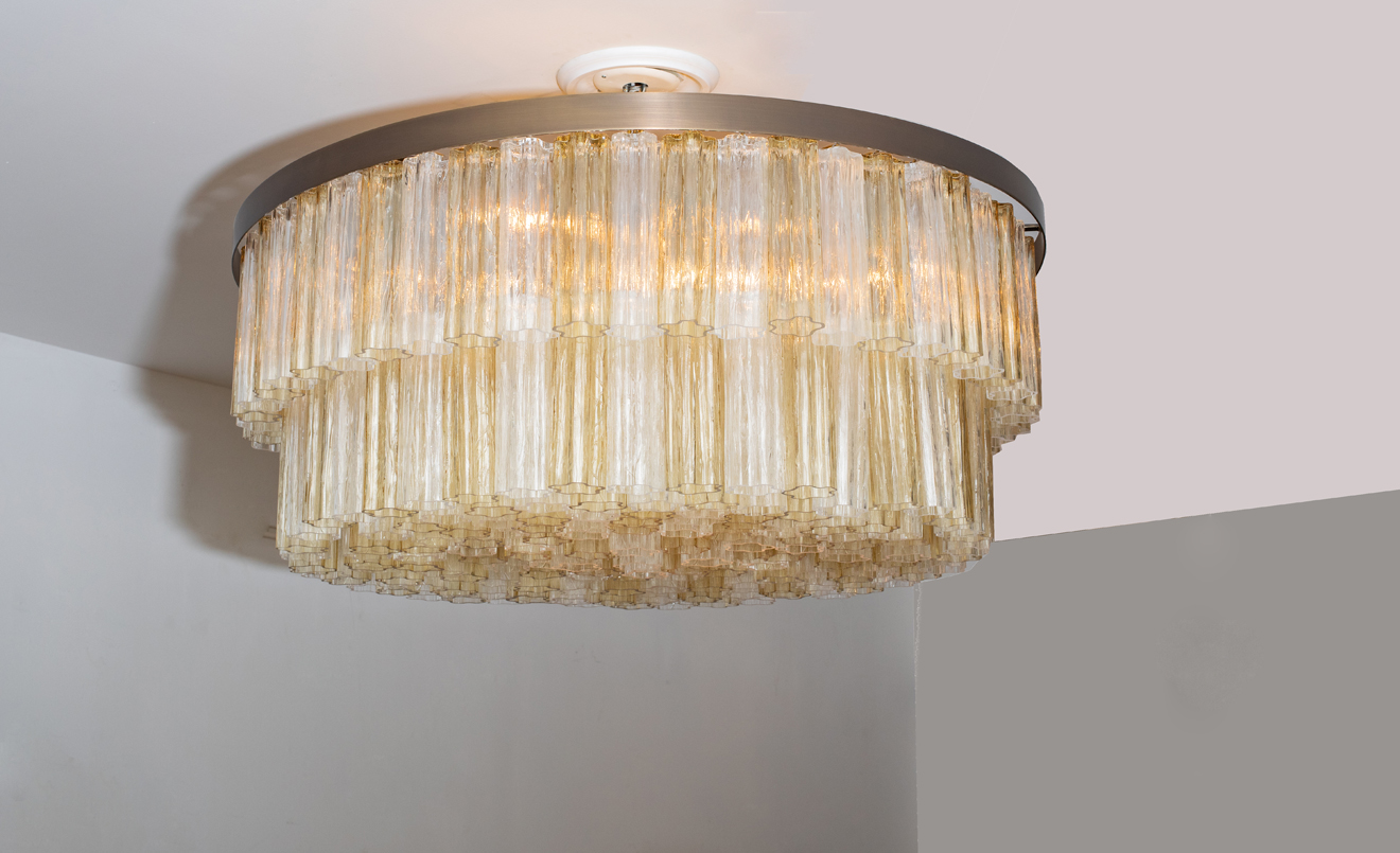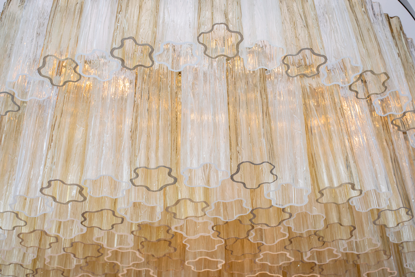 Large Amber & Clear Venini Tubi Chandelier