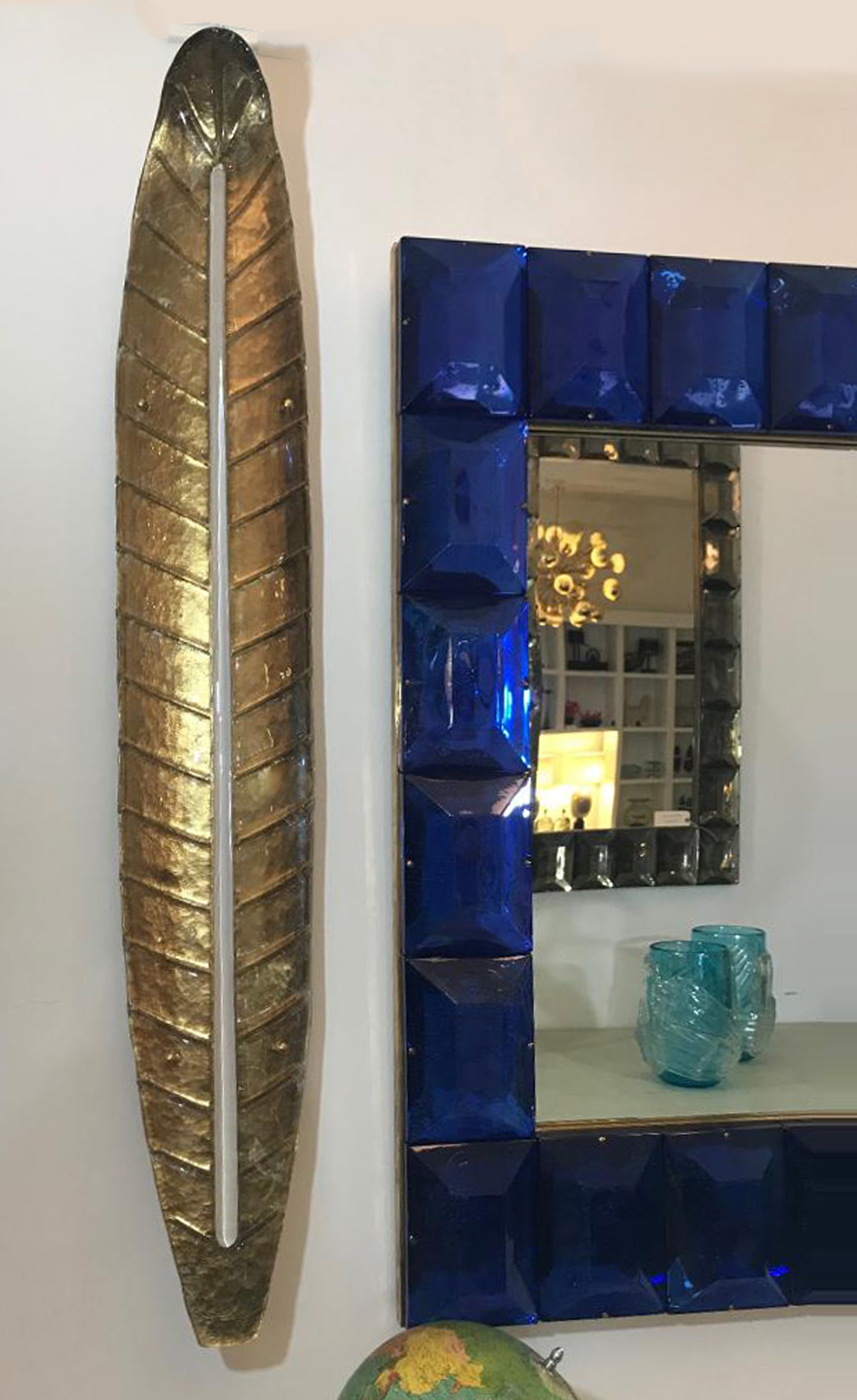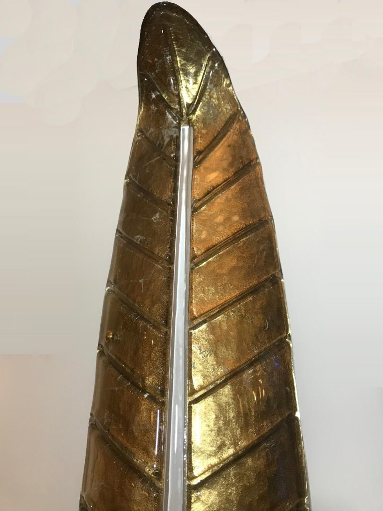 Pair of large palm form gilded and stamped Murano glass sconces, Wired to the American standard. Located in our store in Miami ready for shipping.
