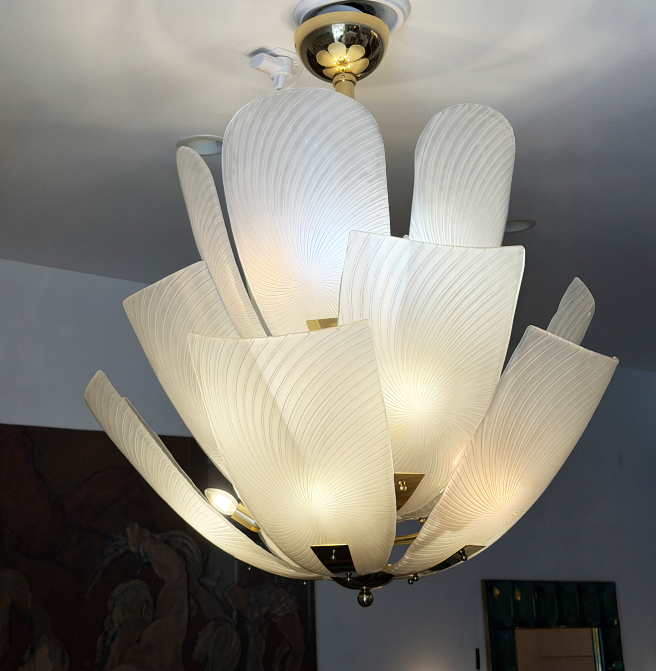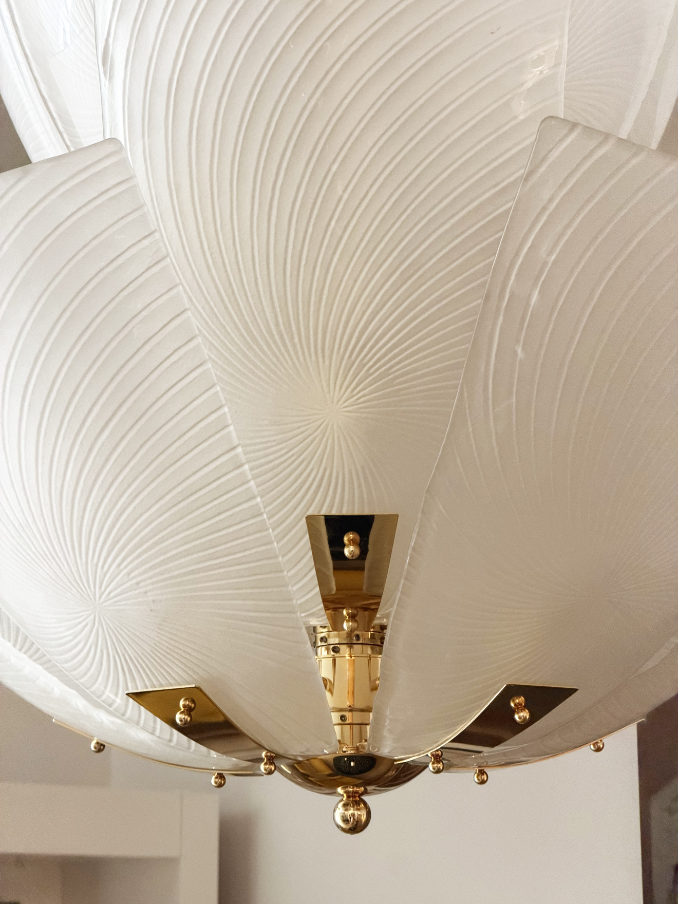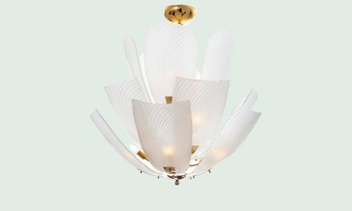 Large Italian glass Petals and gold plated structure chandelier.