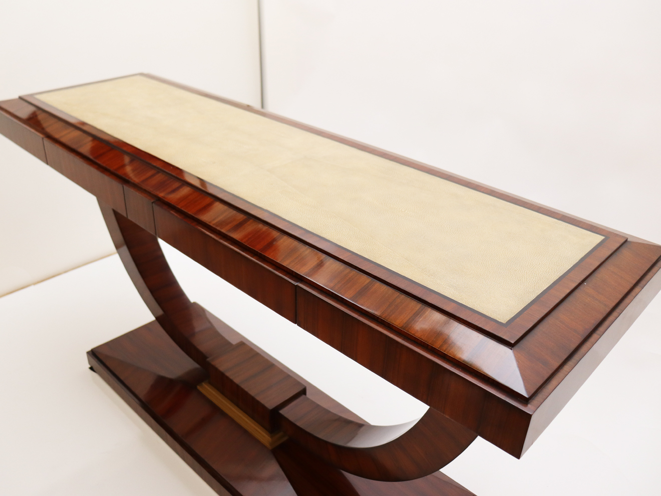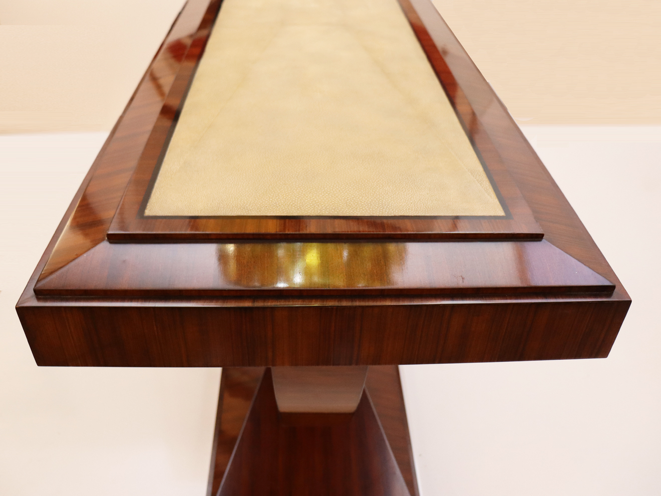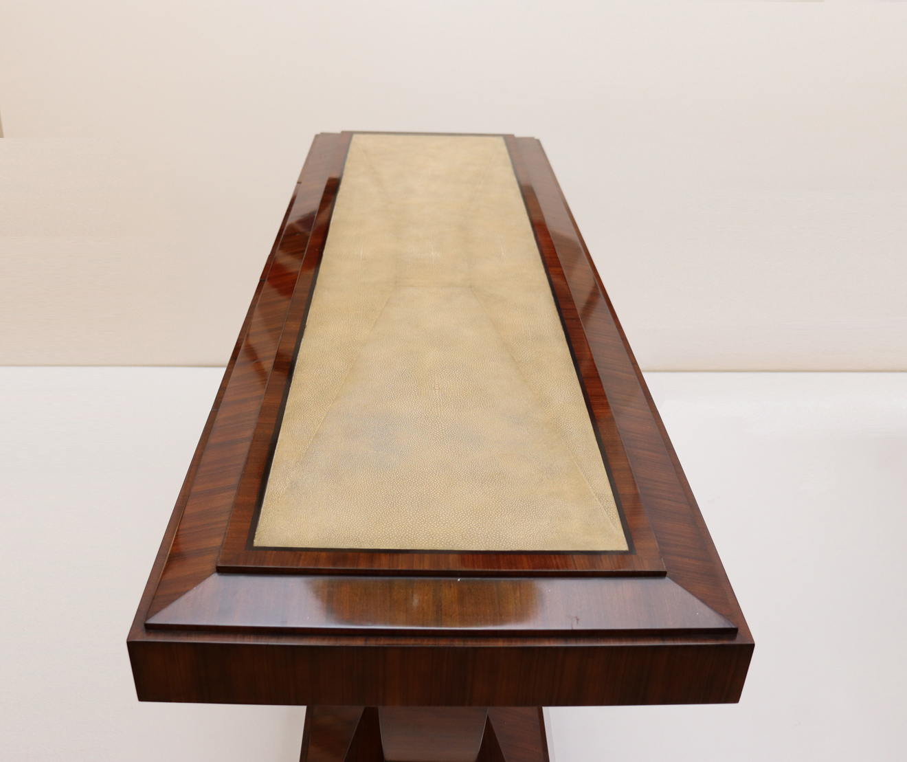 Pair of rosewood consoles with inlaid shagreen tops.