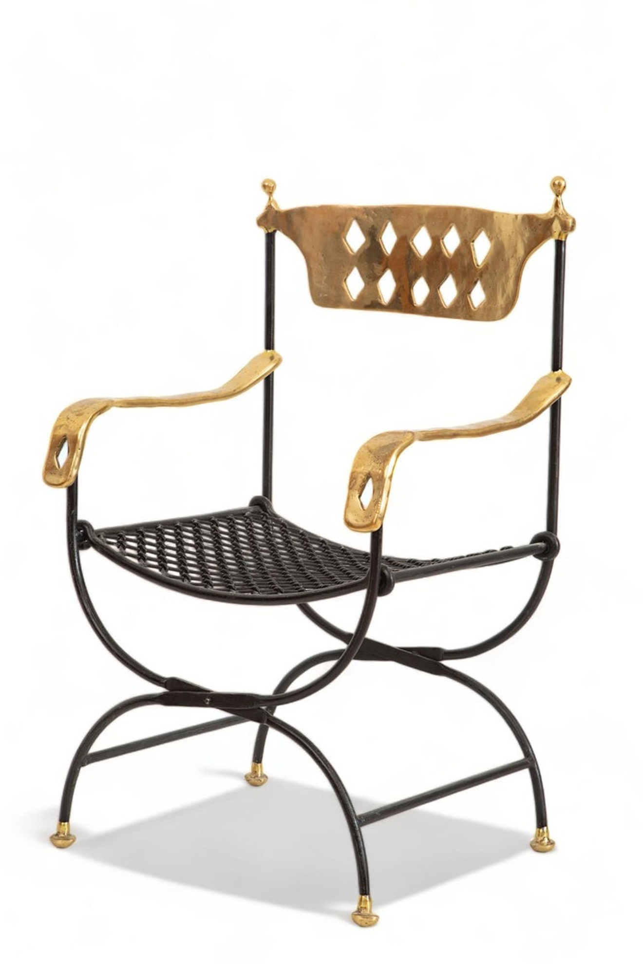 X or scissors Roman inspired chair in iron and bronze, not foldable