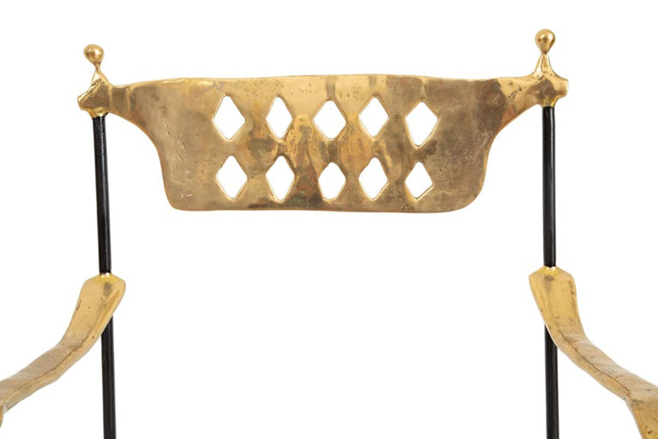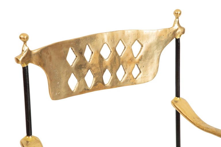 Pair of bronze and iron Dante curule armchairs, by David Marshall