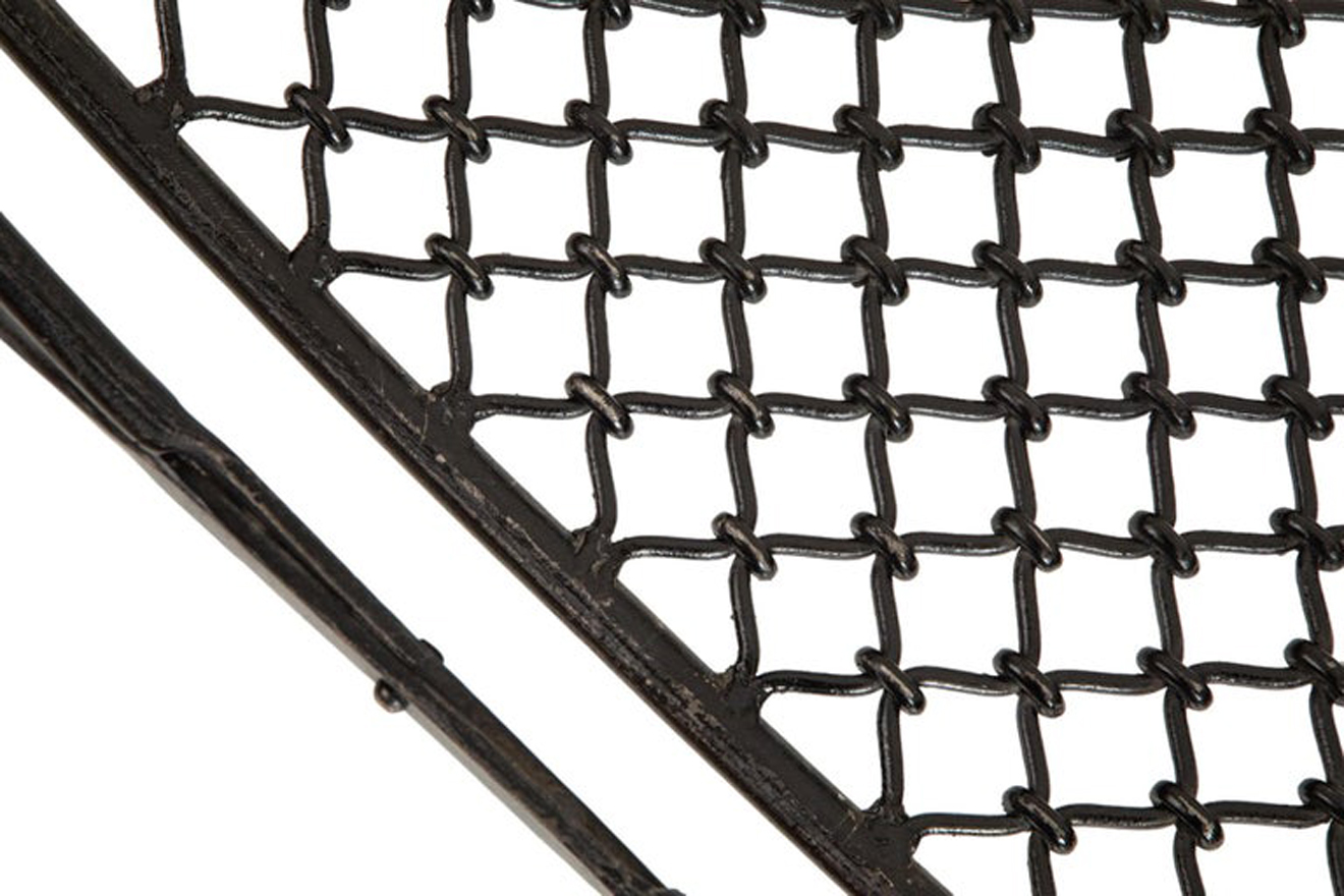 Seat is slightly curved made of thick and robust iron mesh.
