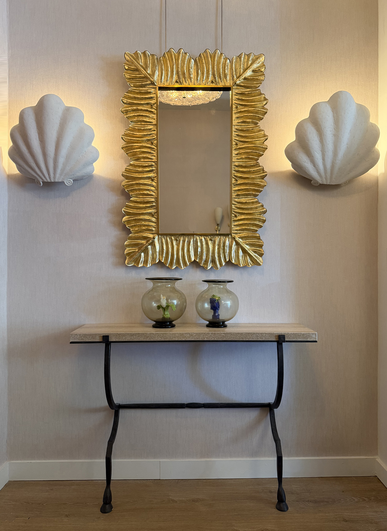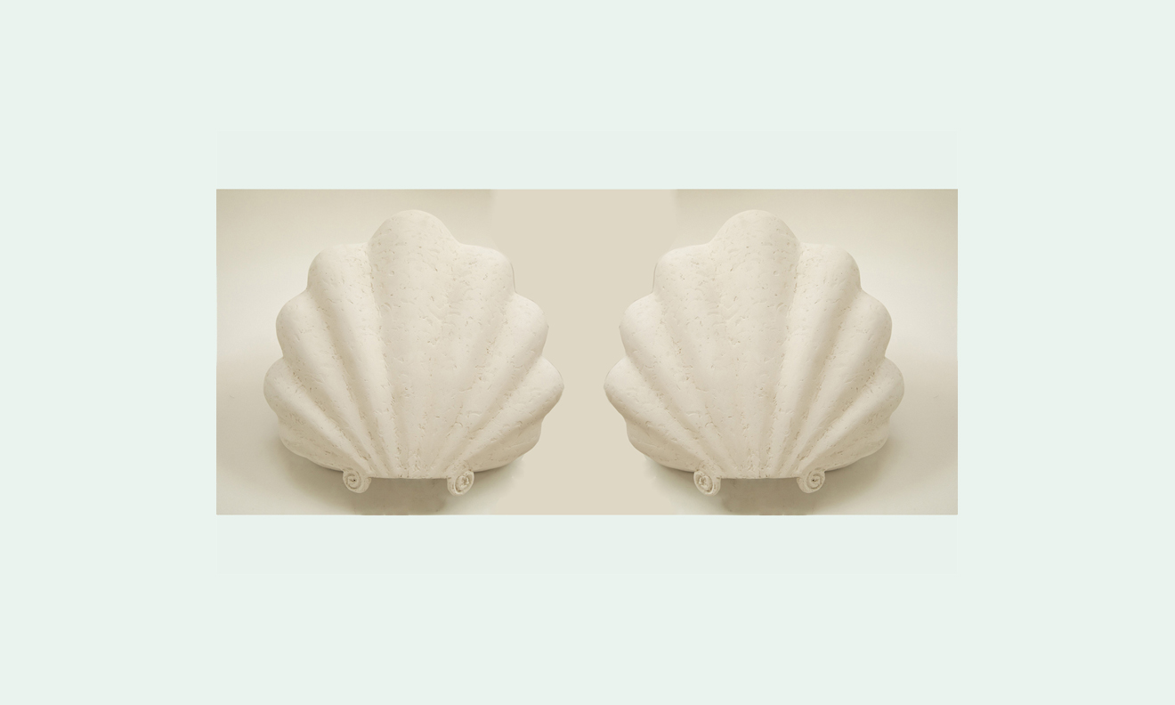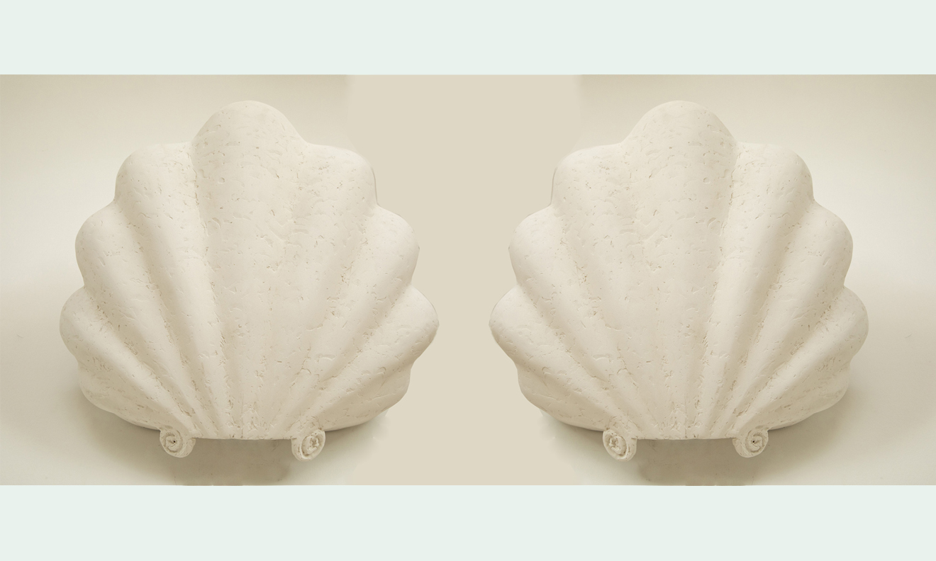 Large pair of studio plaster shell wall sconces