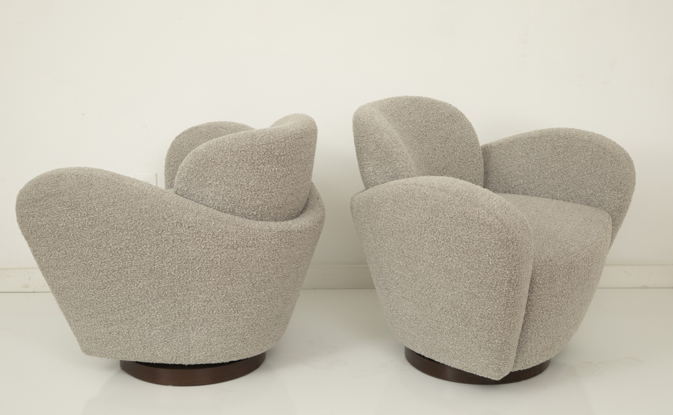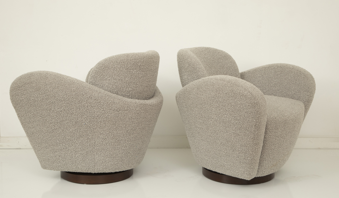 Pair of swivel lounge chairs.