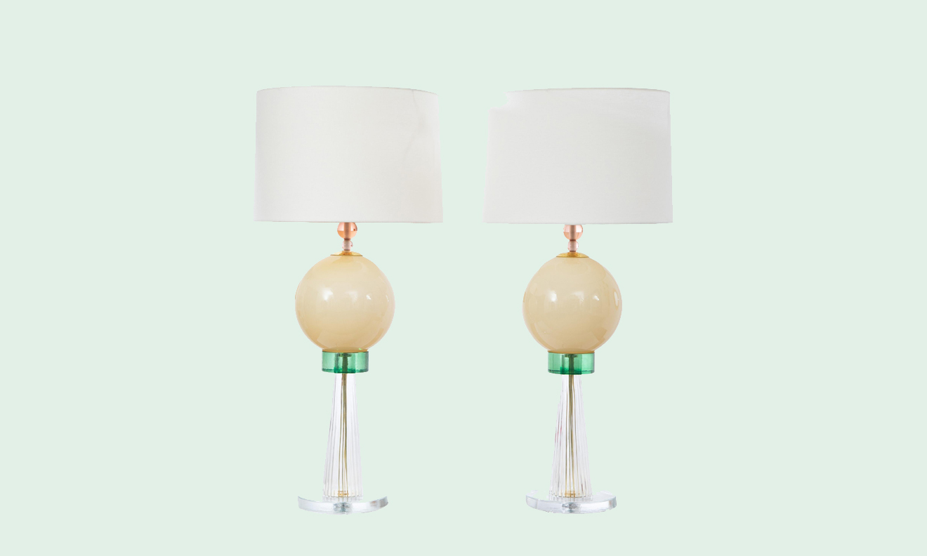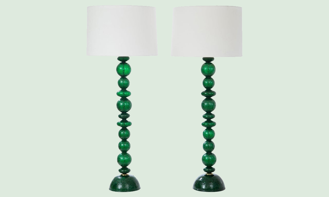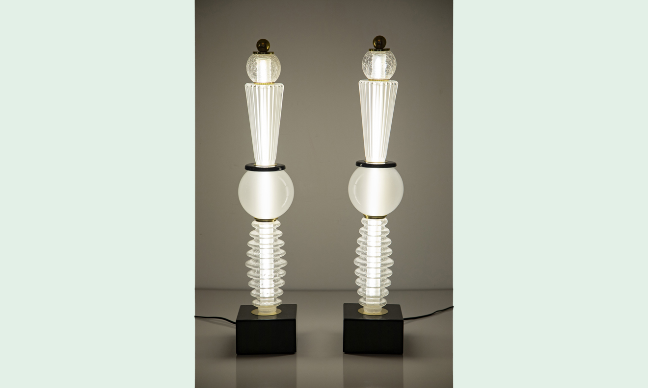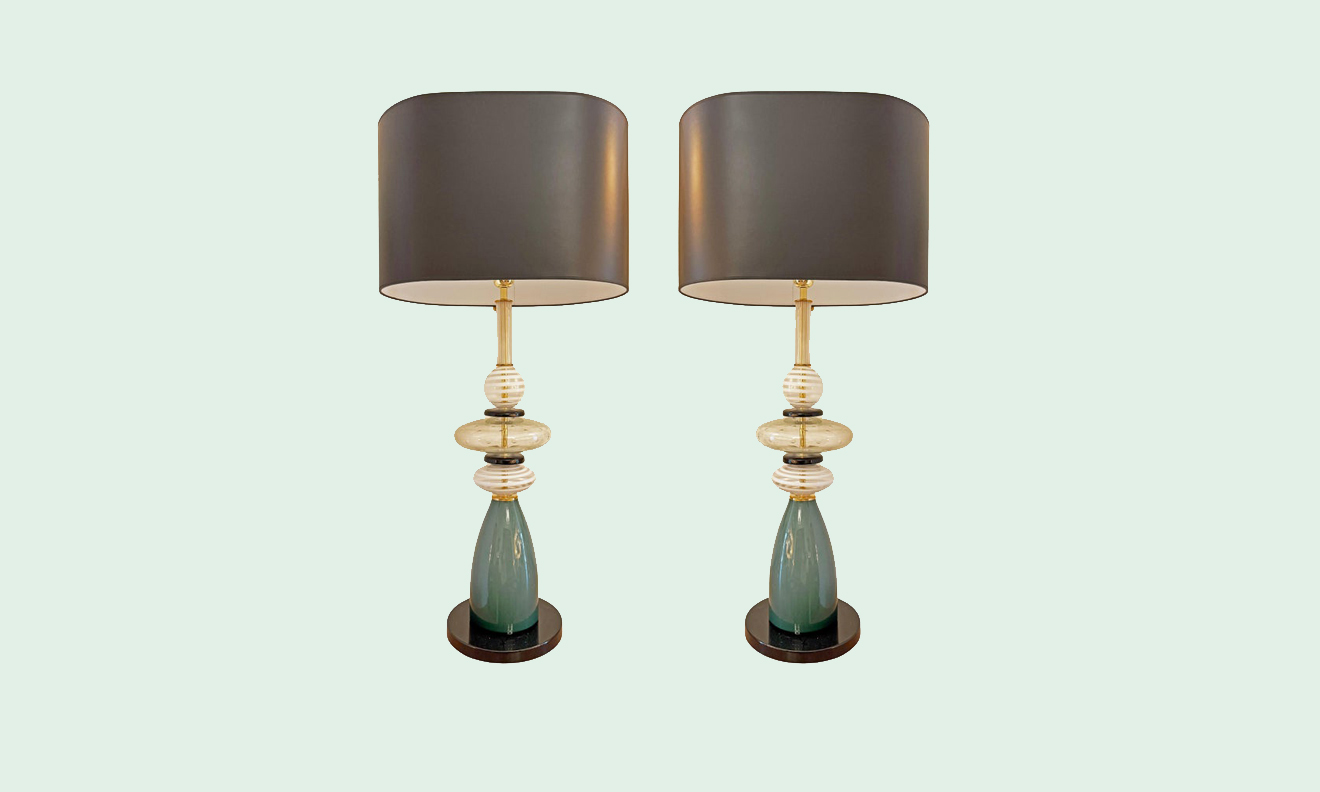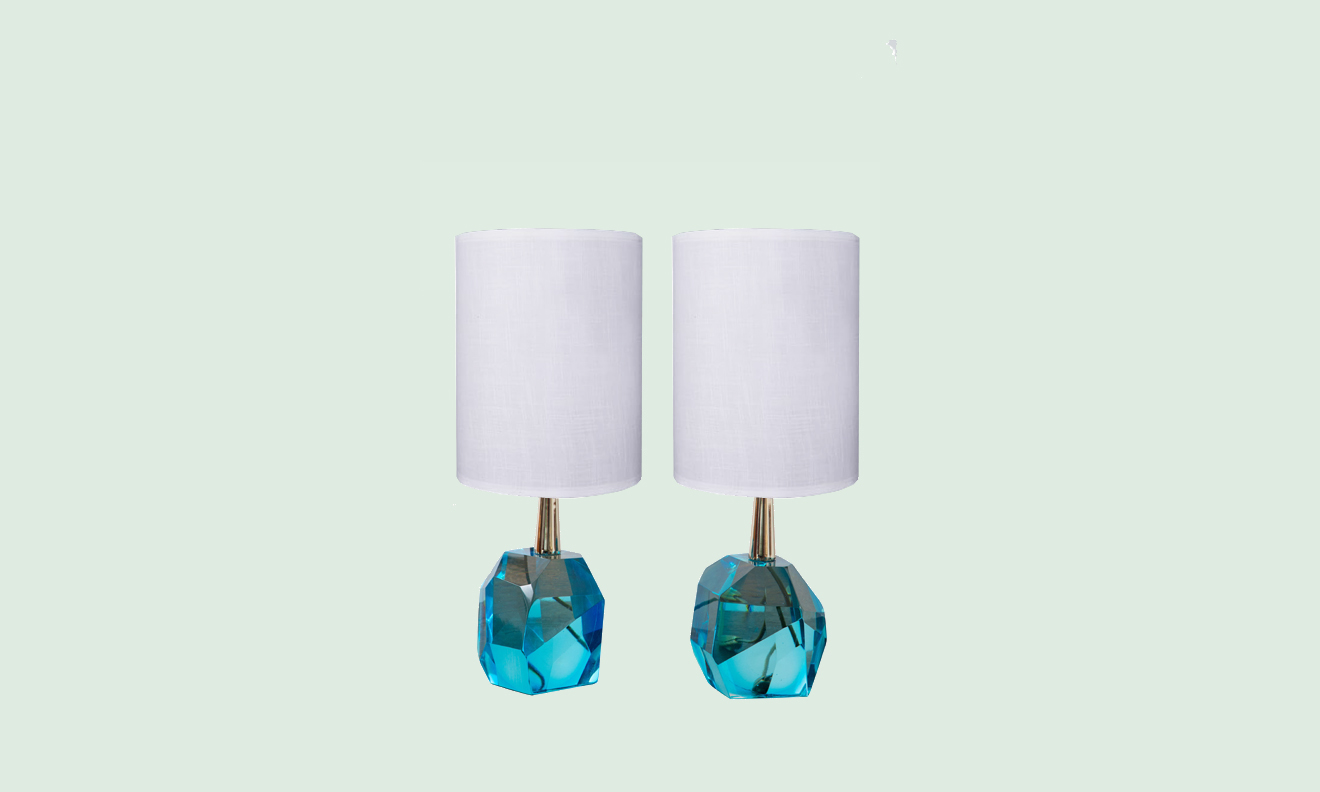 Pair of Faceted Murano Translucent Turquoise Glass Table Lamps, in Stock