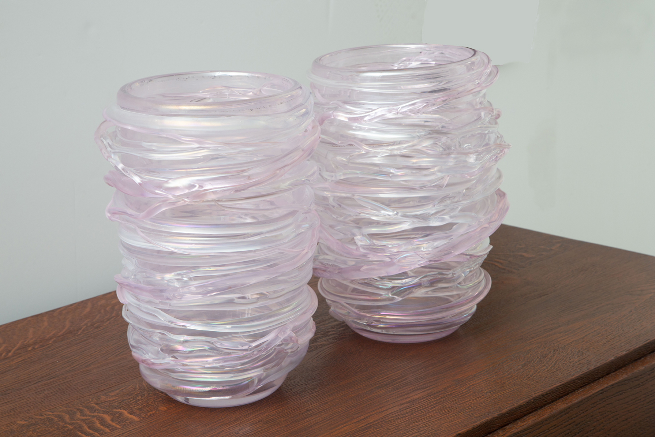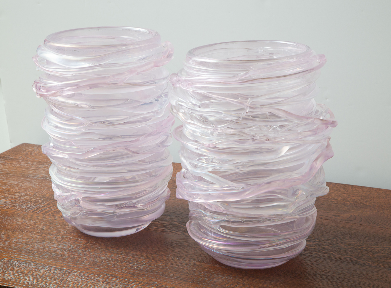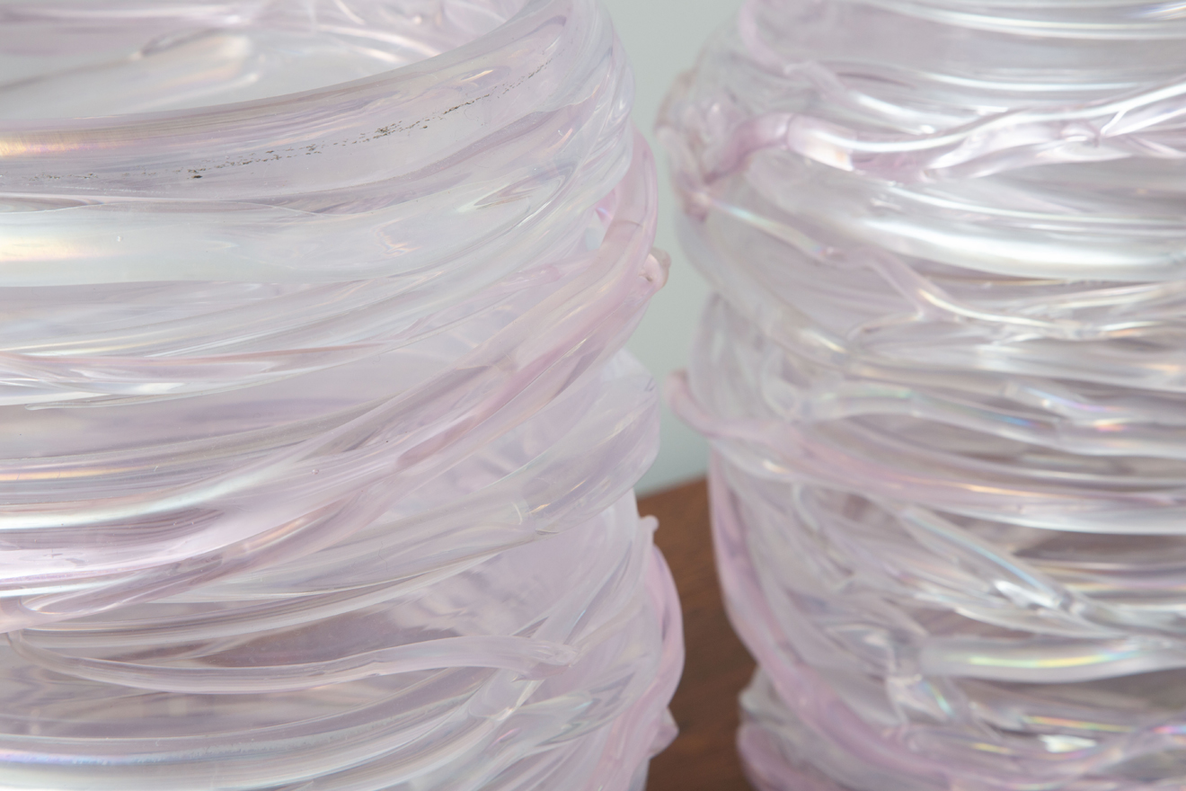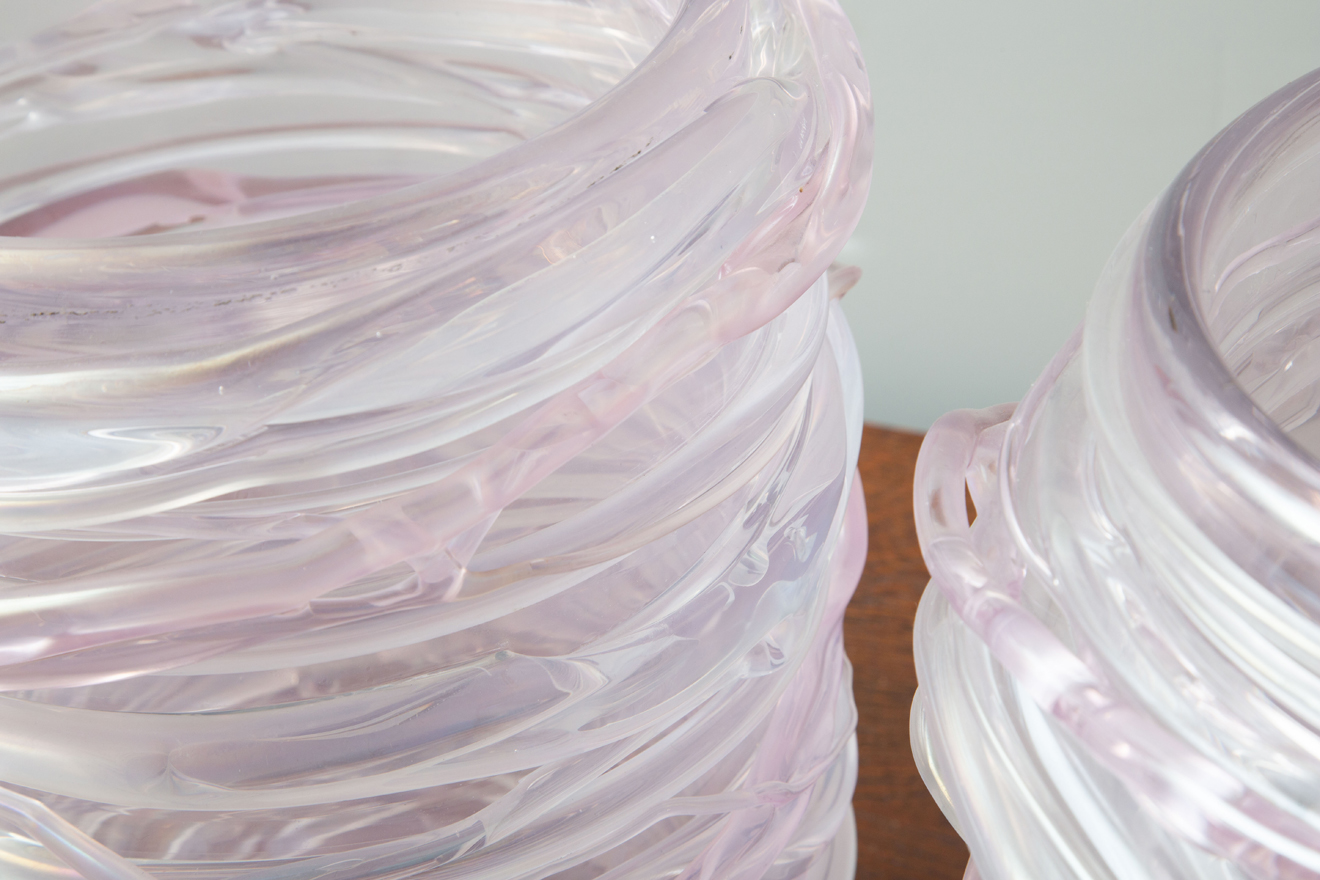 Italian hand blown pink murano vases.