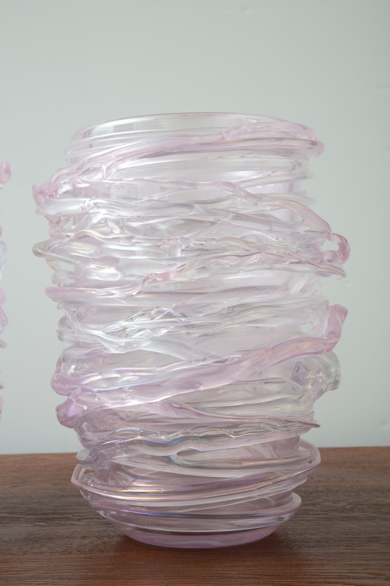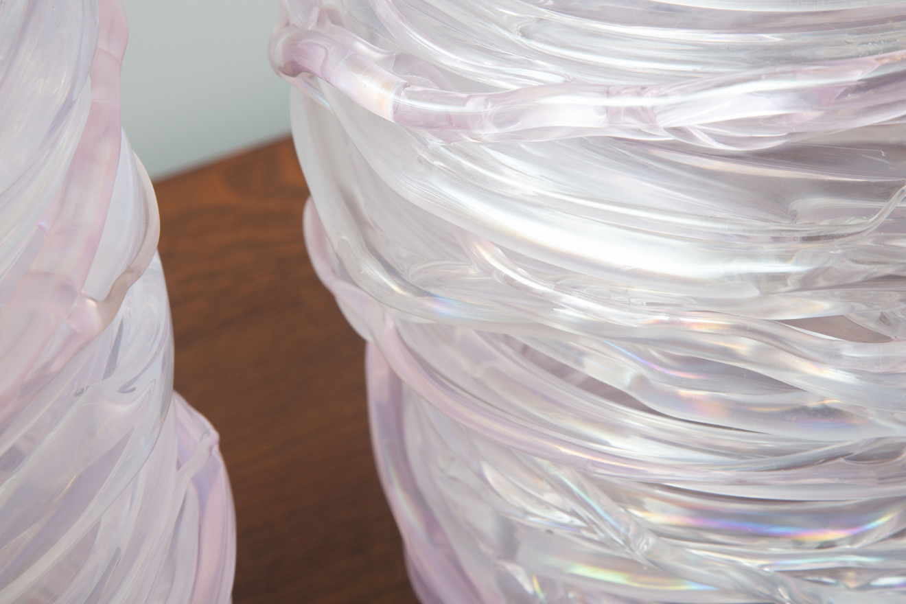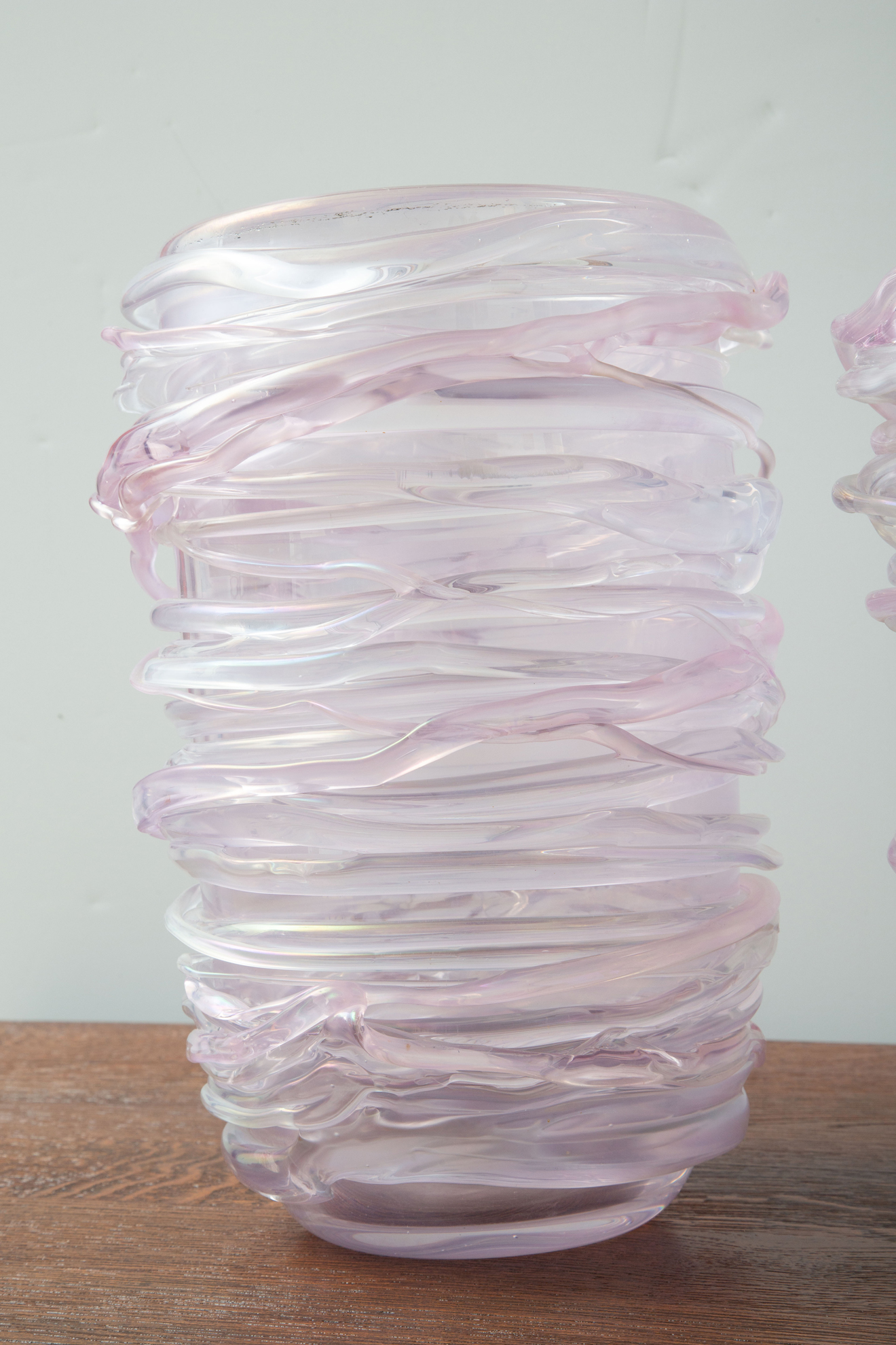 Italian hand blown pink murano vases.