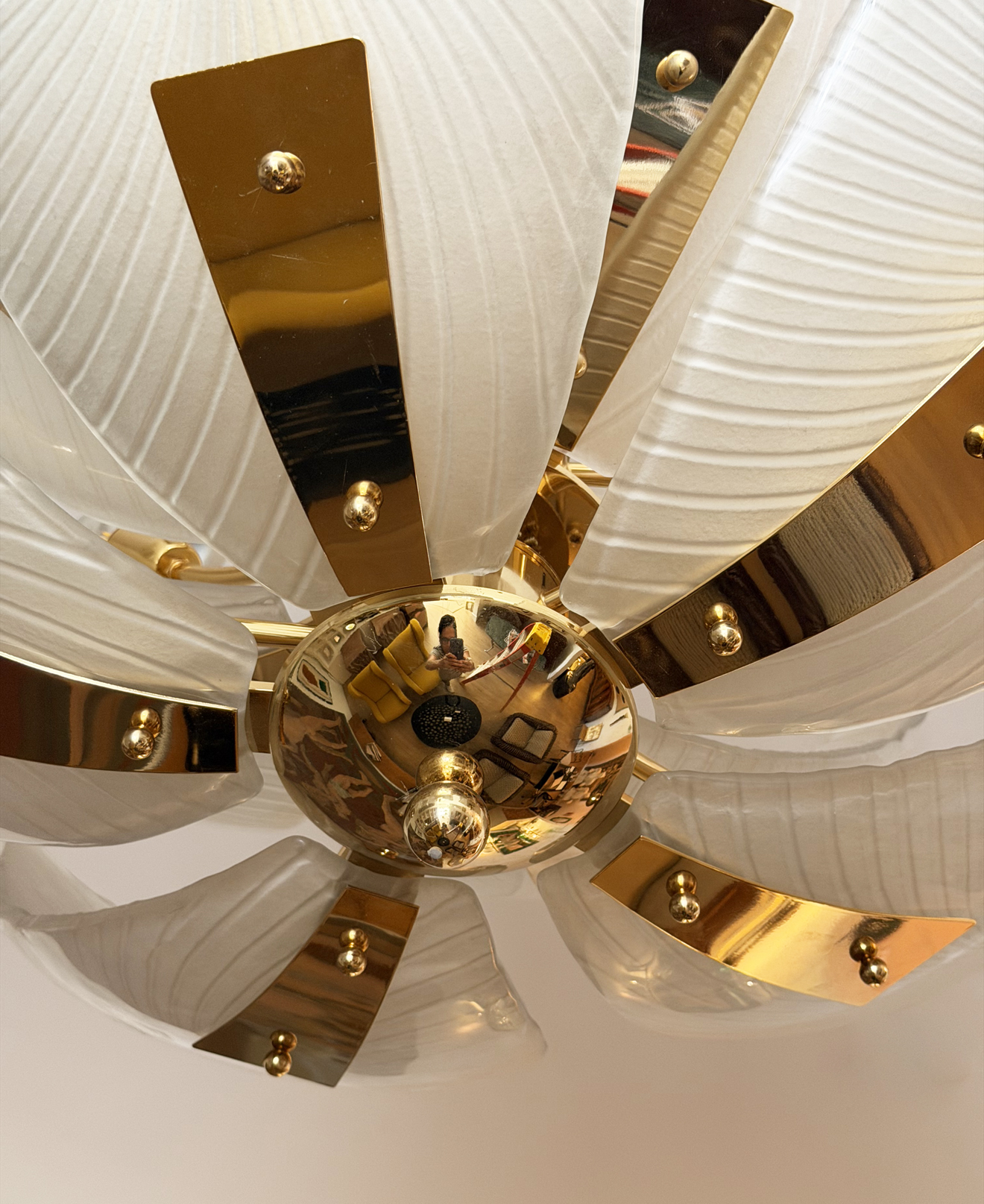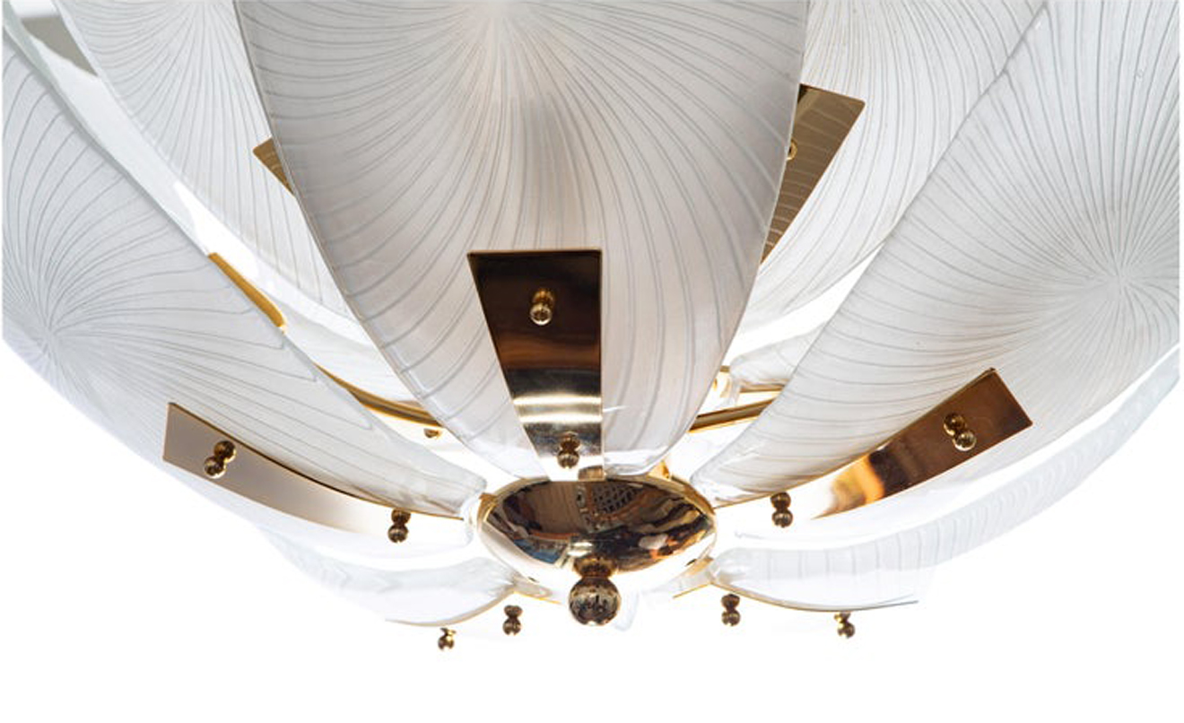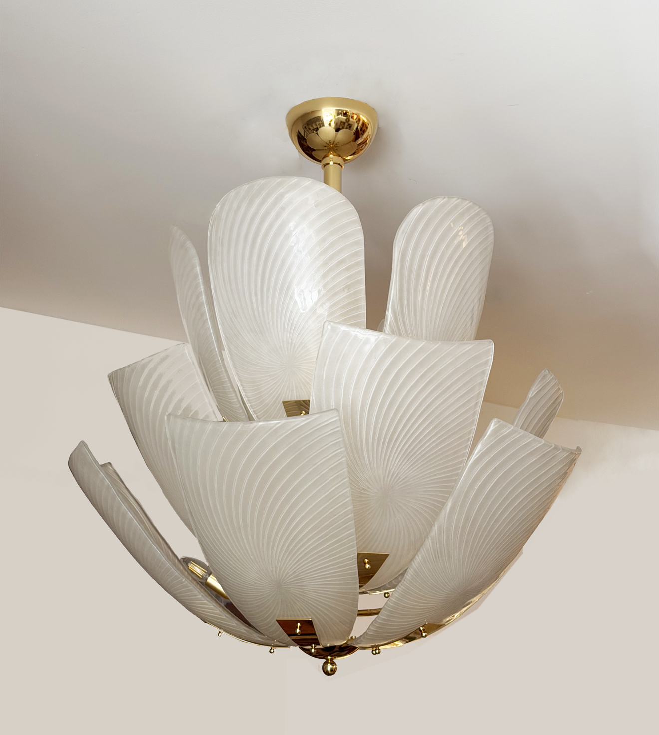 Large Italian glass Petals and gold plated structure chandelier.