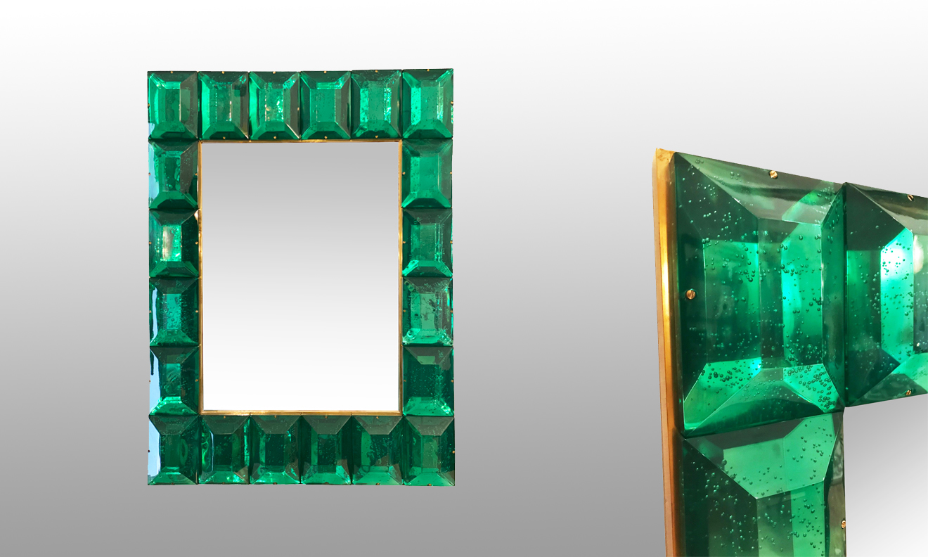 Each  glass block has a highly polished diamond faceted cut pattern with air inclusions throughout.