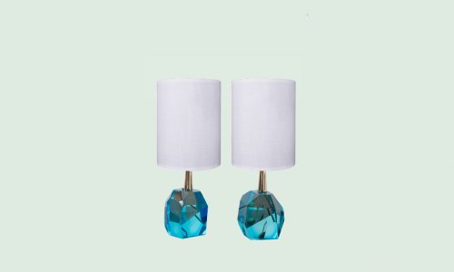 Pair of faceted diamond shaped Murano Turqoise glass table lamps, in stock