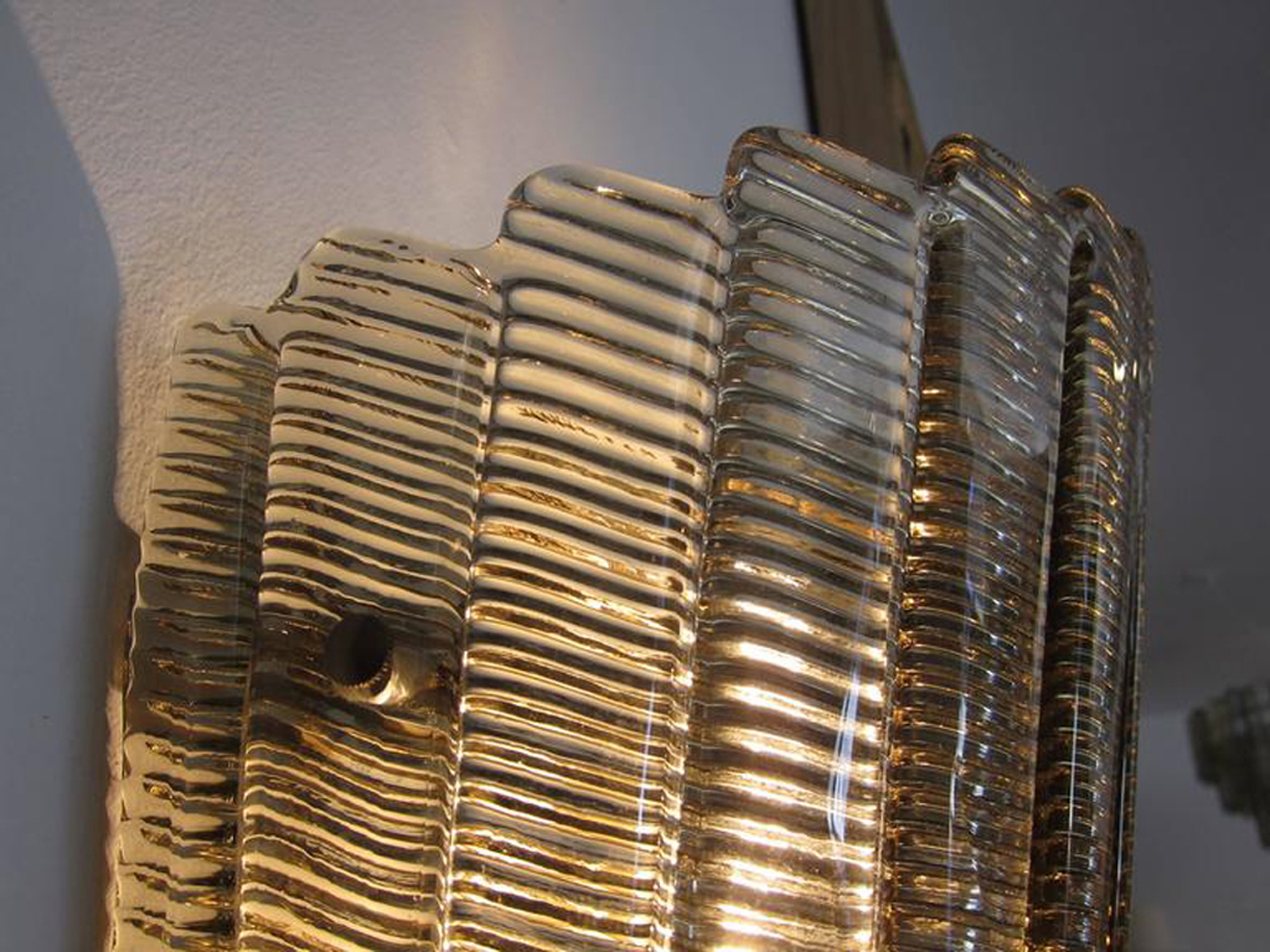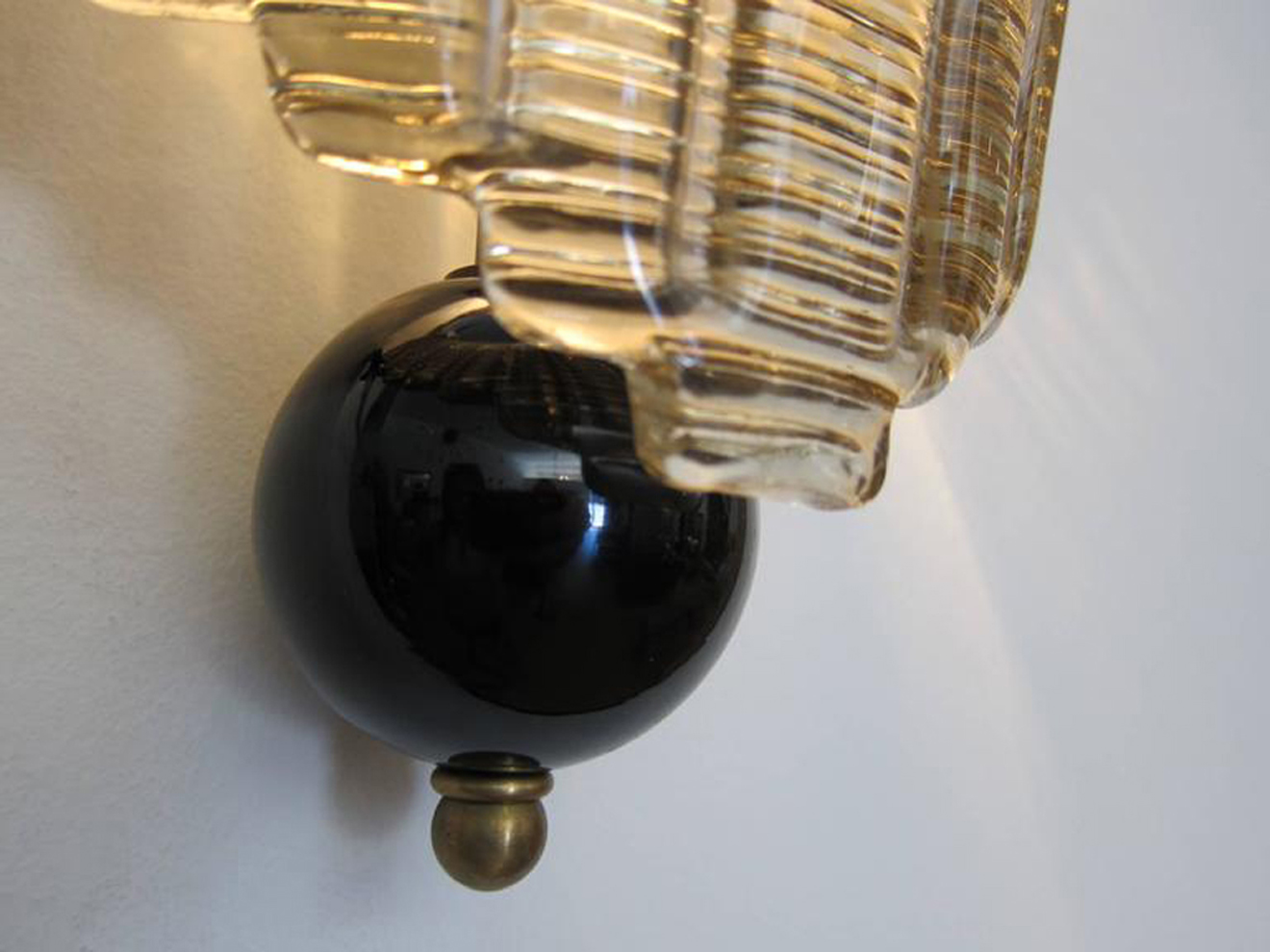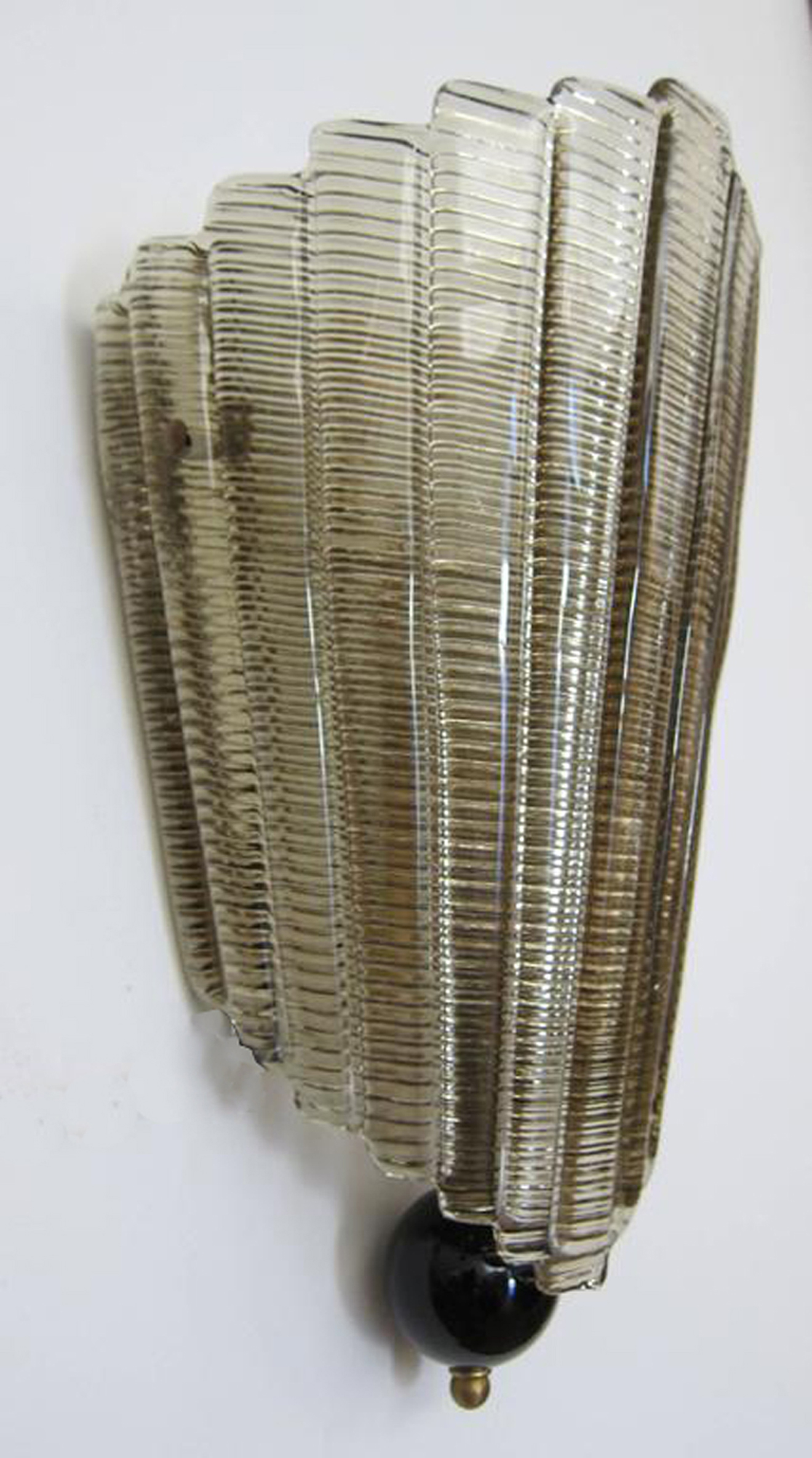 Pair of smoked textured and black glass wall sconces Art Deco inspired design. Wired to the American standard Located in our store in Miami ready for shipping.