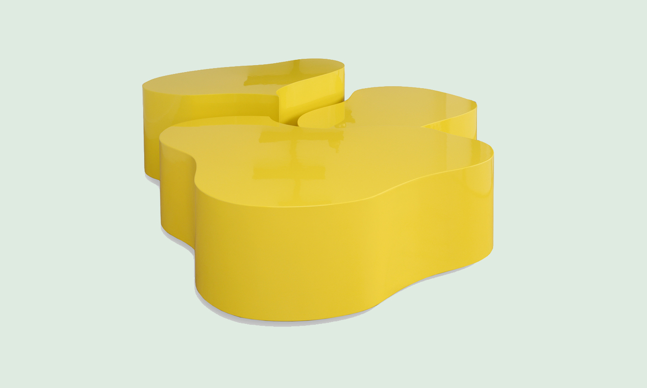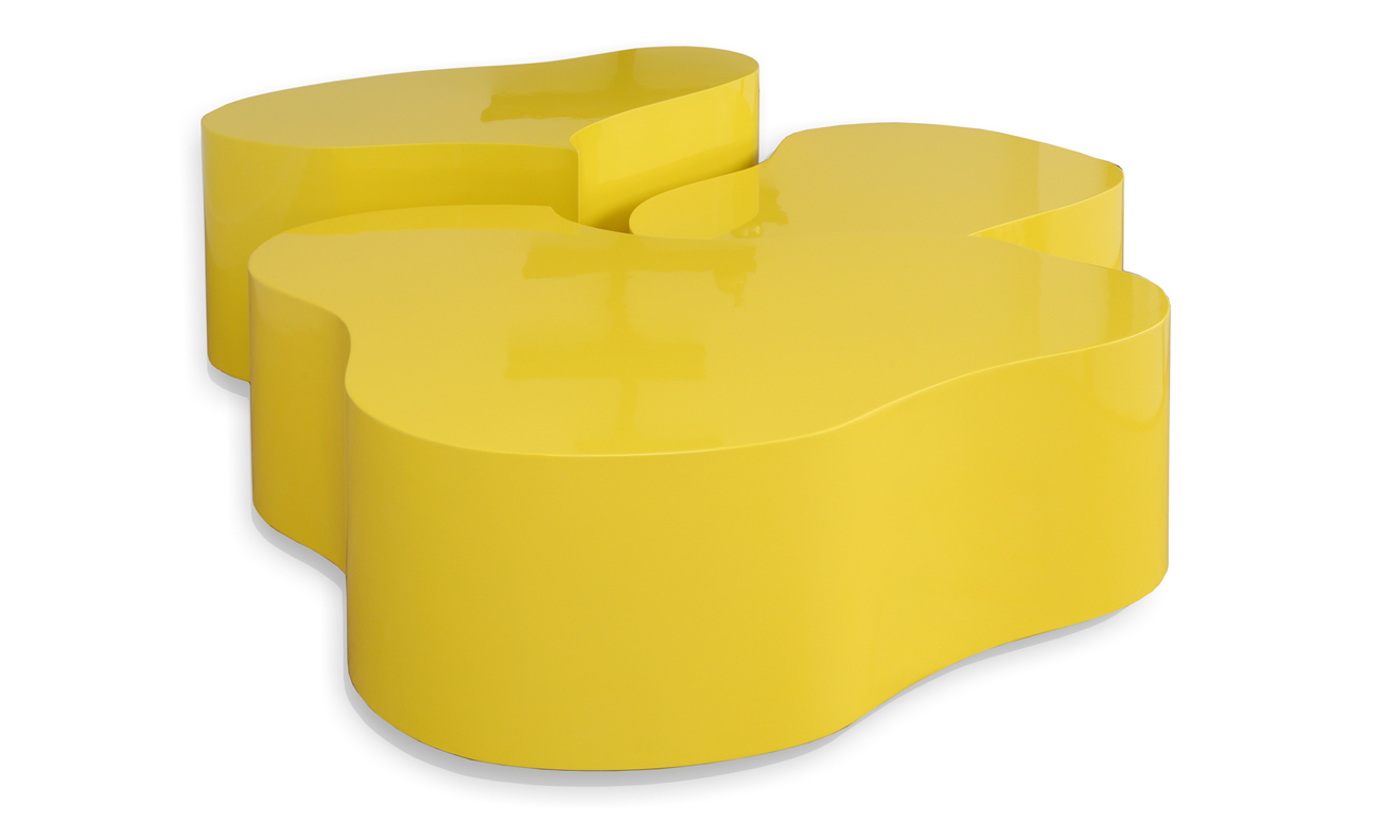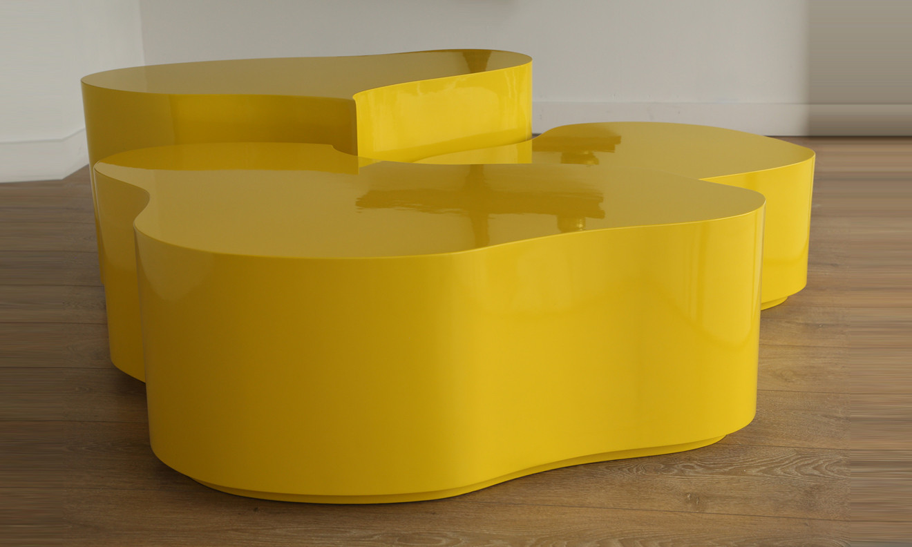 A vintage set of free-form coffee tables, newly lacquered in canary yellow.