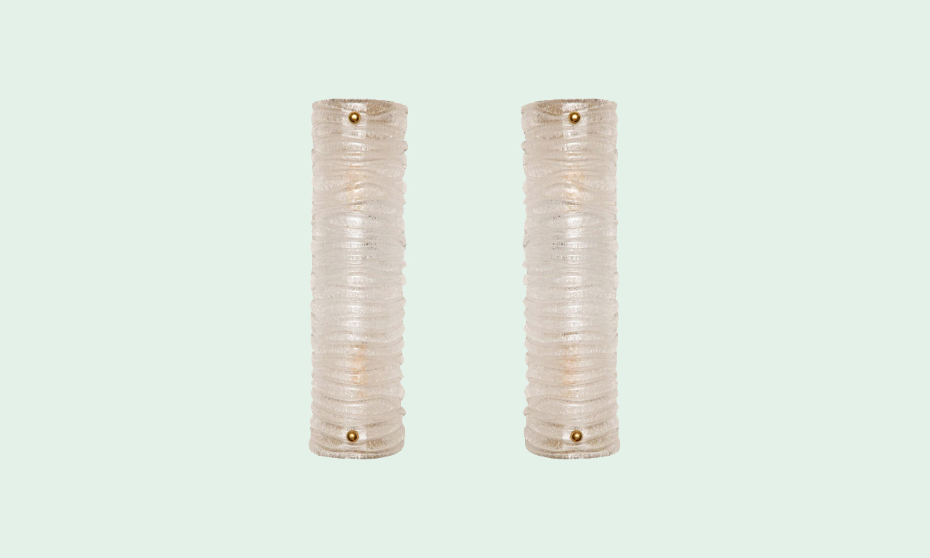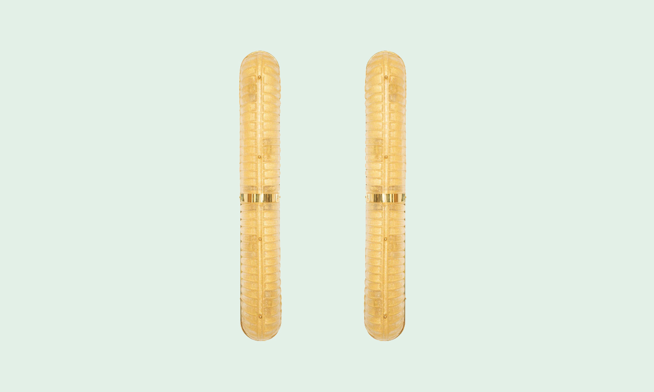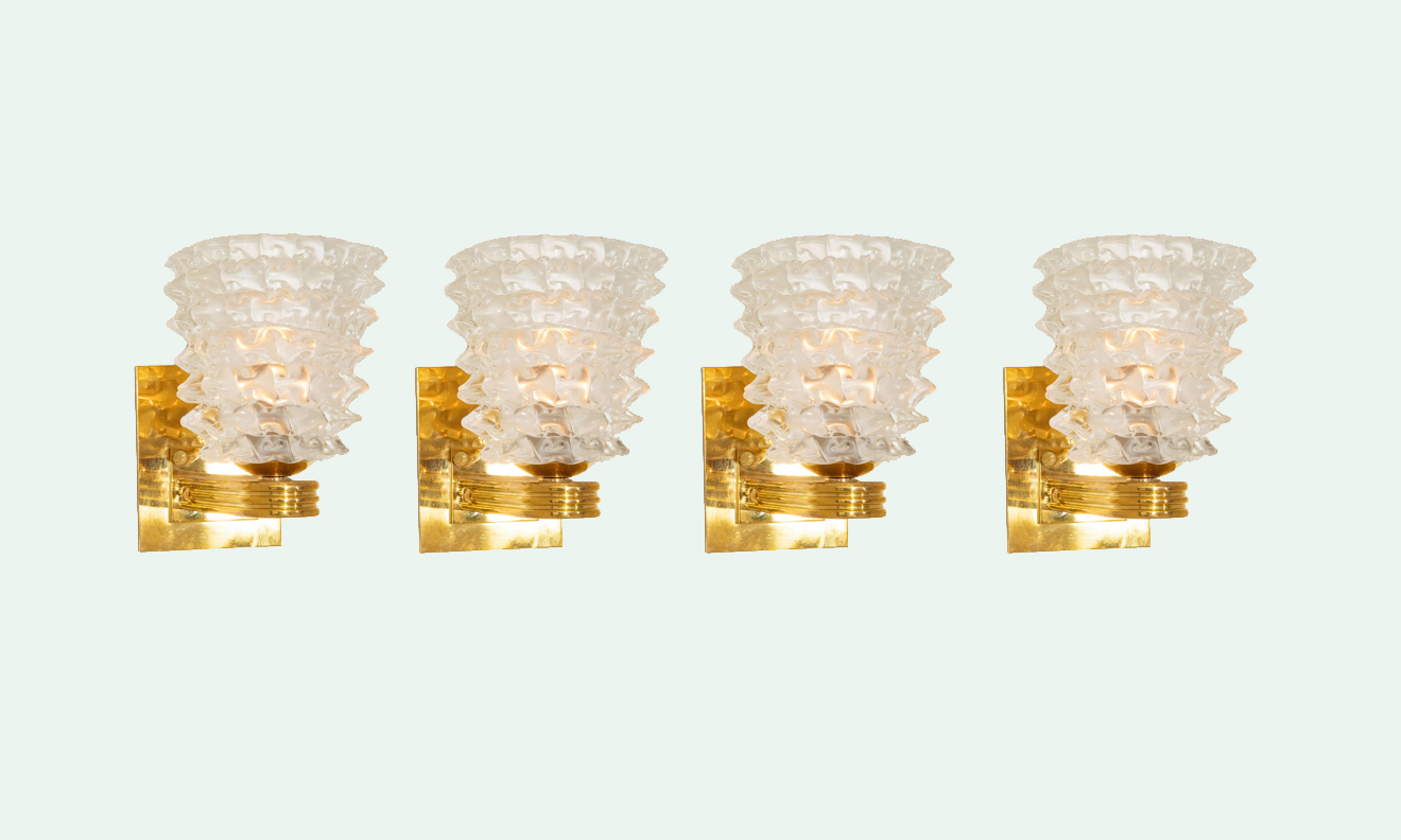Pair of Clear Murano Textured Glass and Brass Wall Lights, in stock