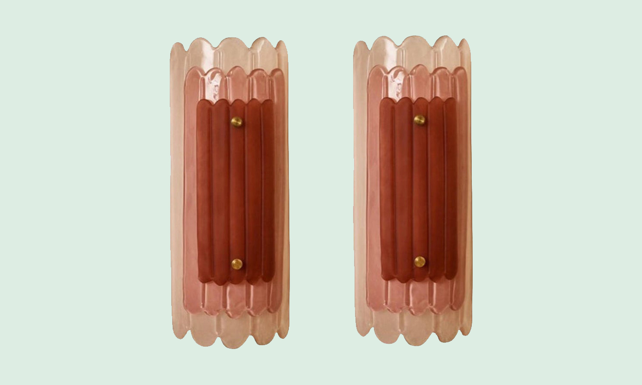 Pair of Art Deco style Pink Murano Glass Wall Sconces, in stock